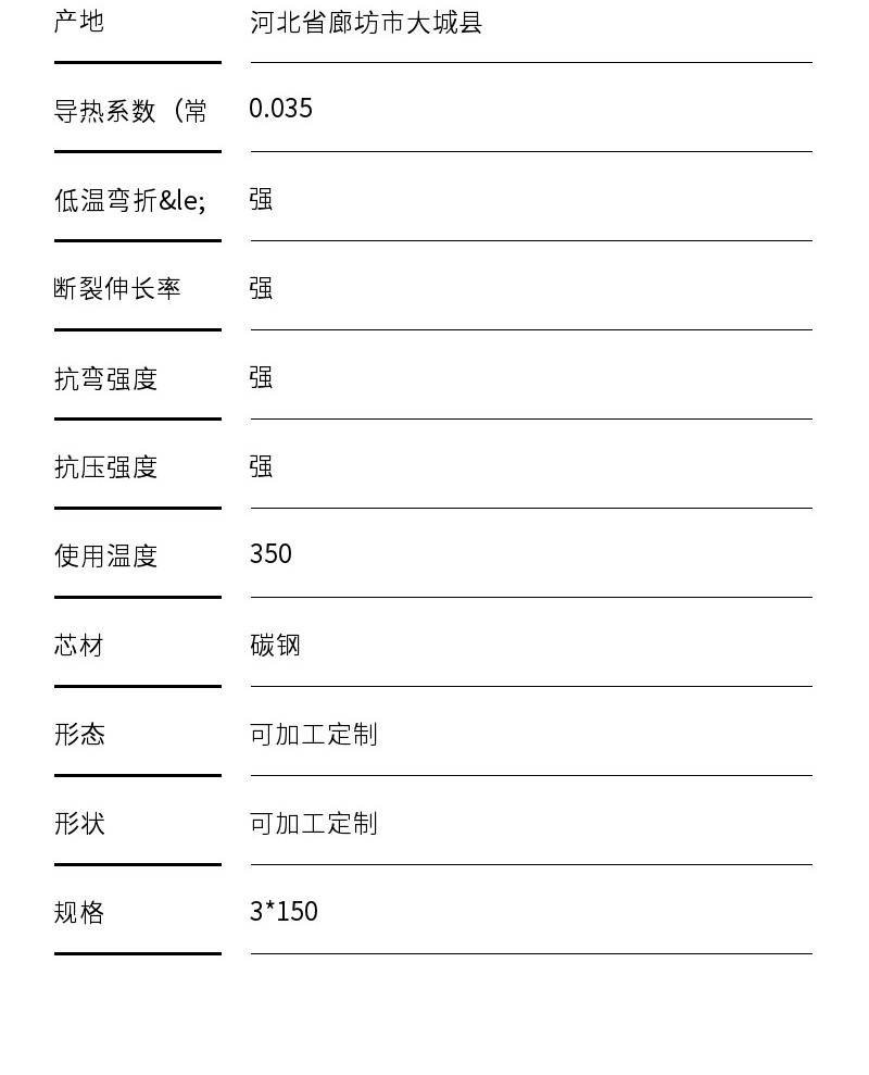 | 導(dǎo)熱系數(shù)(常溫)0.035 | 低溫彎折≤強(qiáng) |